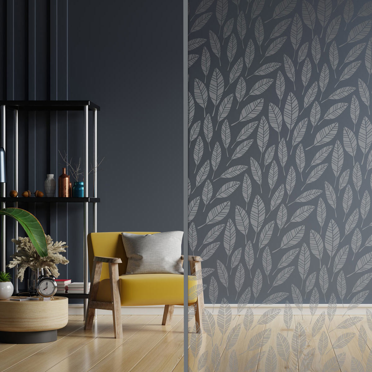 Dekorative Sandstrahlfolien mit Motiven oder individueller Gestaltung sowie stilvoller Textil-Sichtschutz für Privatsphäre und modernes Design.
