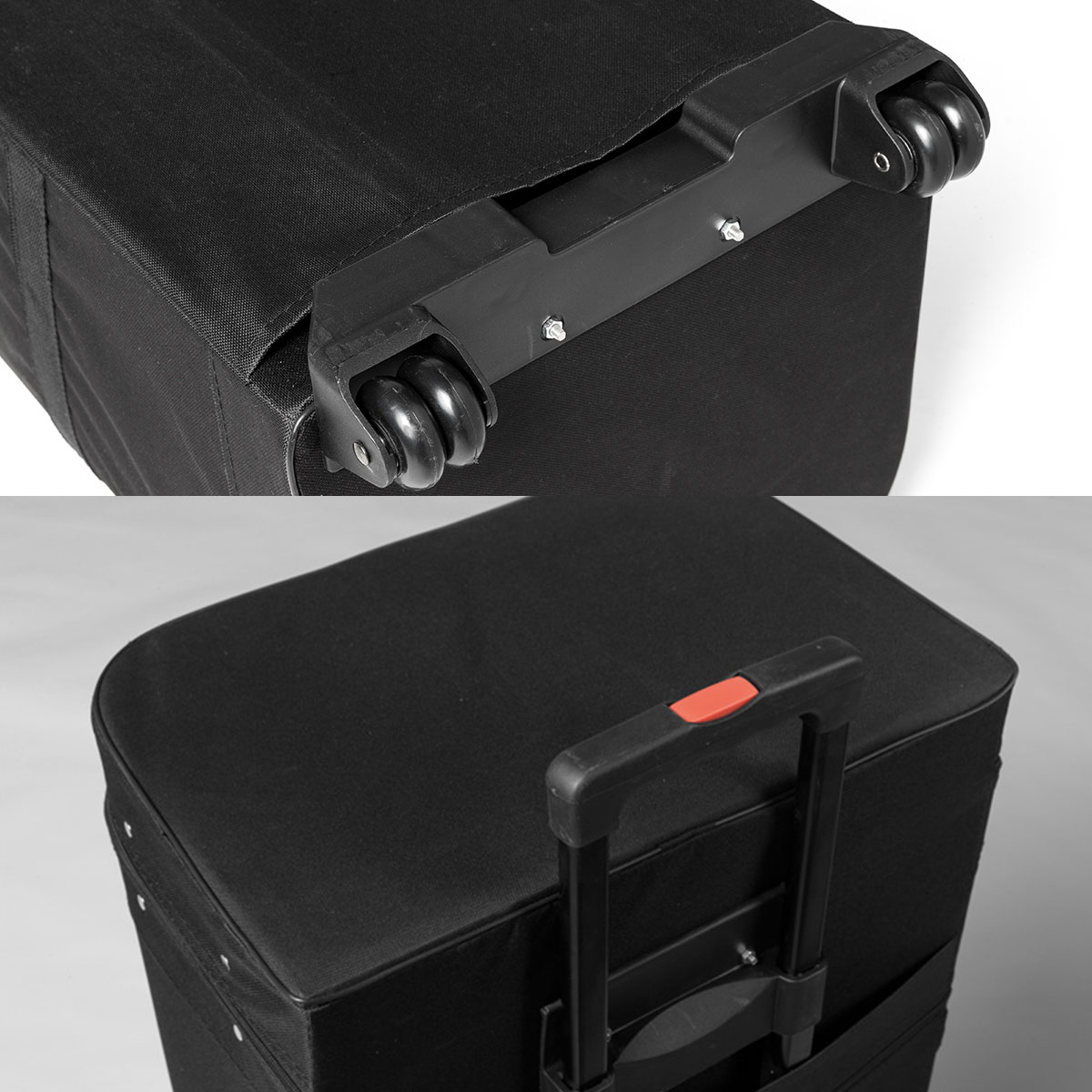 - stabiler Trolley mit ausziehbarem Griff, breiter Radstand und kugelgelagerten Rädern