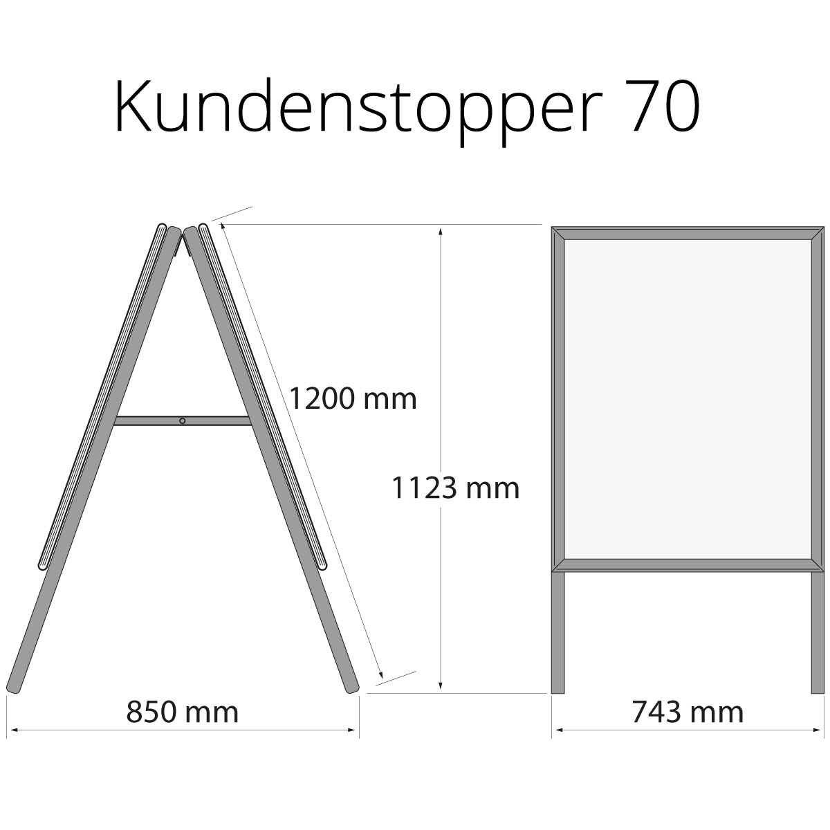 Unsere Kundenstopper bzw. A-Board sind der Klassiker für flexible Werbepräsentationen. Dank den praktischen Klapprahmen wechseln Sie Ihre Botschaften in Sekunden. Transparente Antireflexfolien schützen Ihre Drucke vor Schmutz und Reflexionen. Stabile Aluminiumprofile und Wasserablauflöcher sorgen für Wetterbeständigkeit. Erhältlich in vielen verschiedenen Formaten, eignet sich das A-Board ideal für den Innen- und Außeneinsatz, um Angebote und Werbung professionell und wirkungsvoll zu präsentieren.