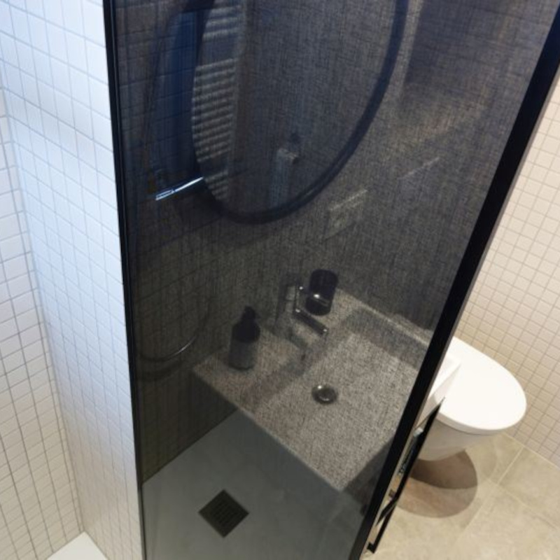 Selbstklebende, transparente Textil-Fensterverkleidung, die Sie tagsüber vor neugierigen Blicken von außen schützt, ohne die Sicht nach draußen komplett zu versperren.
