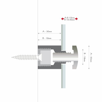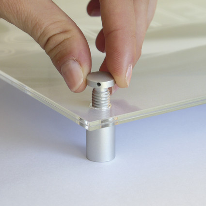 Schraubsystem für grössere Paneele mit mehr Wandabstand. Hülsenhals für leichtes positionieren des Paneels. Fingerabdruck-resistent.